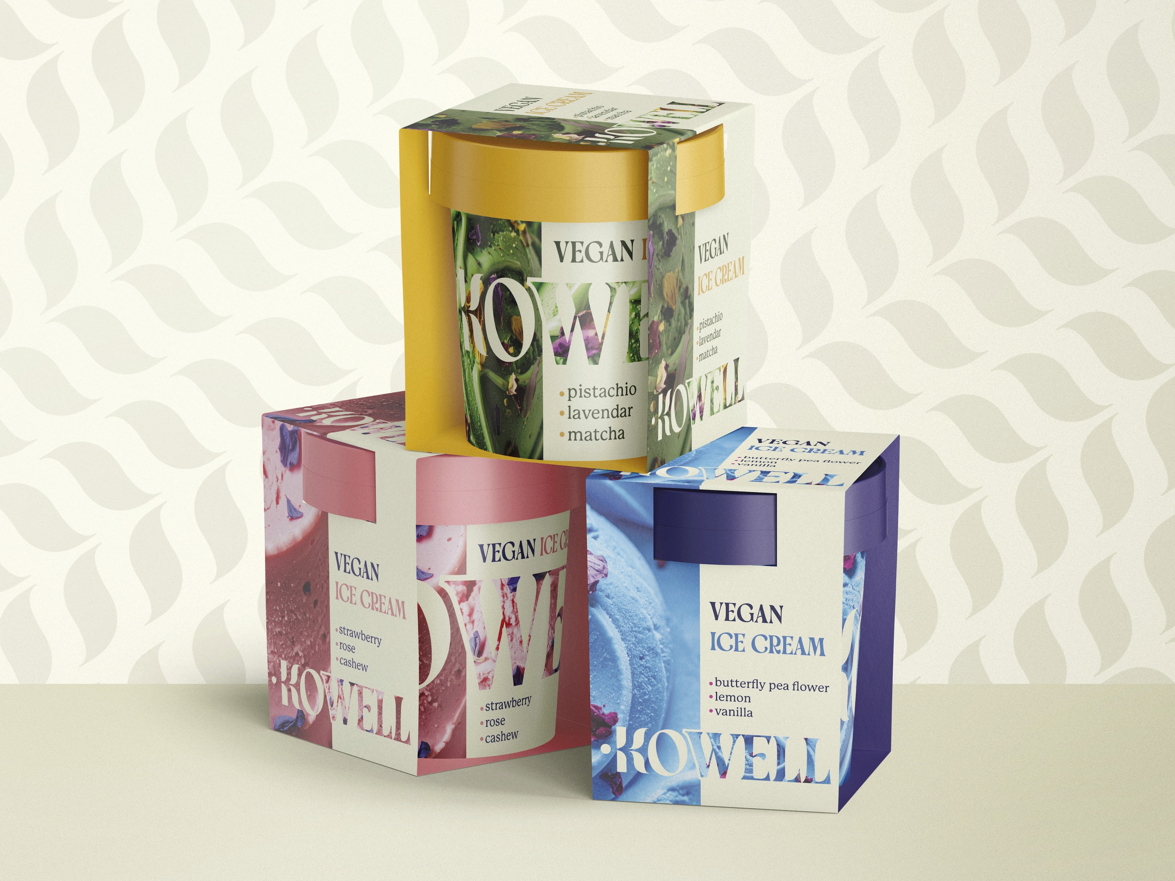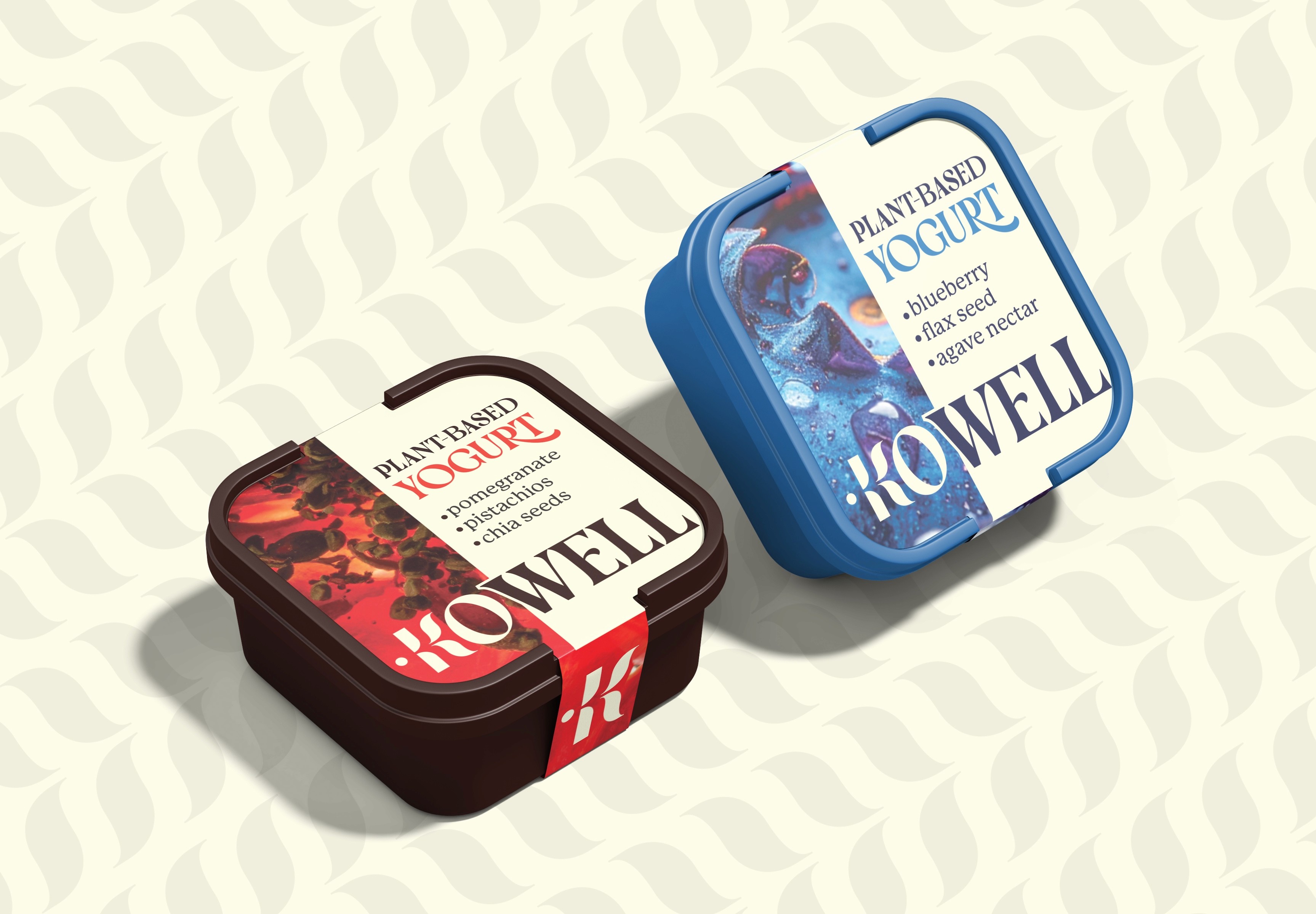 The KoWell mark is composed of five unified forms representing the client’s five disciplines, reinforcing the idea of expertise working as a cohesive whole. A flexible identity system allows the full wordmark to anchor professional contexts while a simplified icon extends naturally into packaging and digital applications. Warm neutral tones paired with rich earth colors establish trust and nourishment, while close observational food photography emphasizes texture, process, and discovery, visually connecting scientific precision with the tactile experience of cooking.