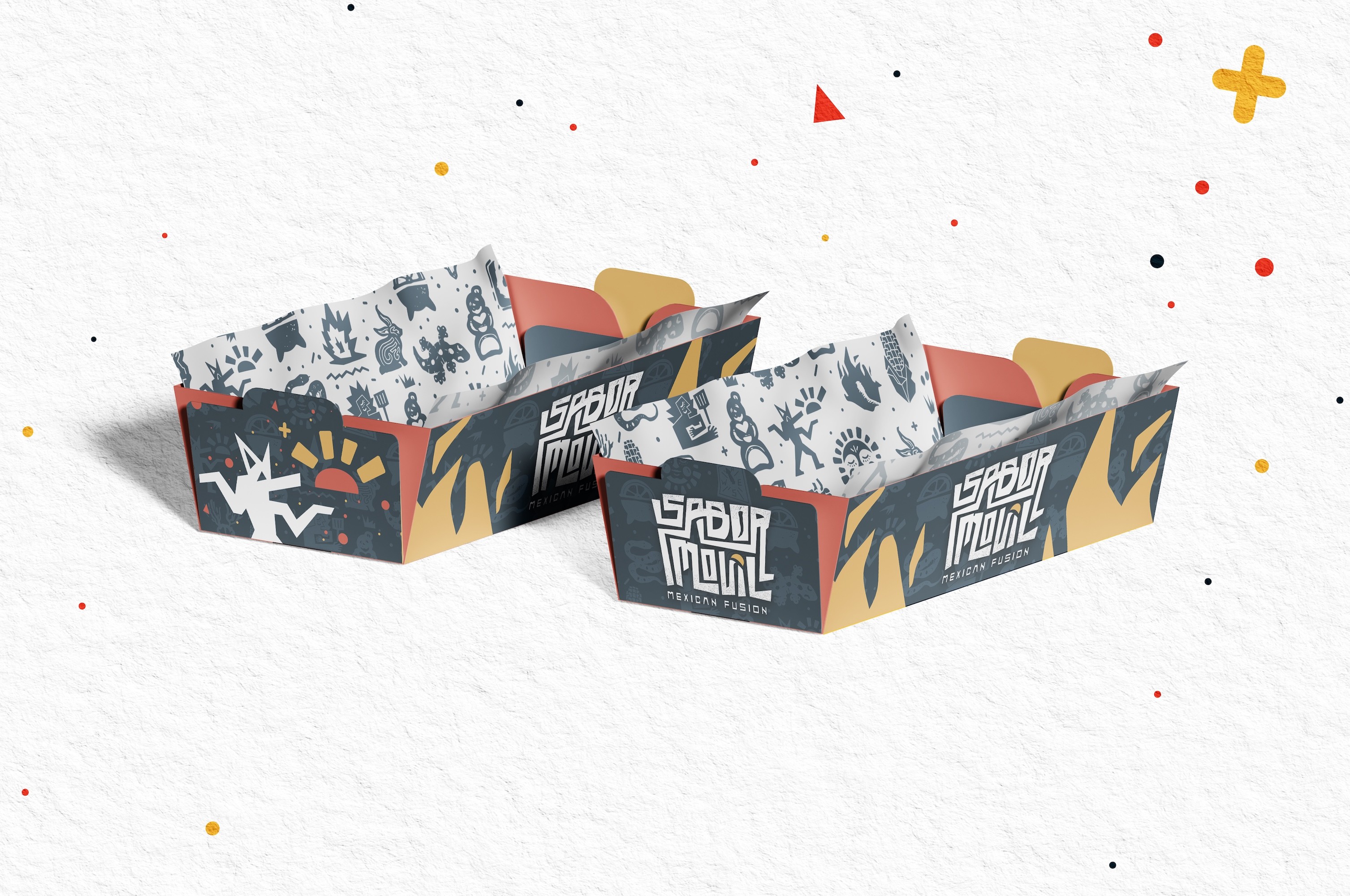 Every customer touchpoint, including menus, taco trays, tissue paper, and hot sauce packets, extends the brand experience, reinforcing recognition while reflecting the handcrafted nature of the food itself.